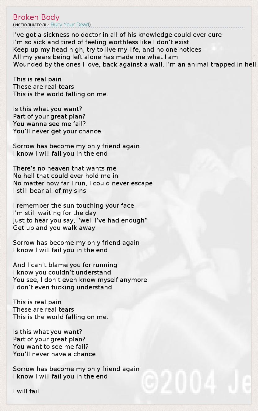 А как ты думаешь, о чем песня "Broken Body" ?