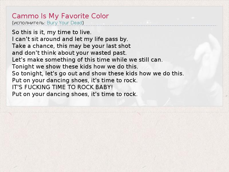 А как ты думаешь, о чем песня "Cammo Is My Favorite Color" ?