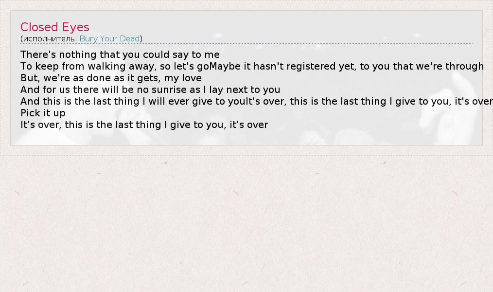 А как ты думаешь, о чем песня "Closed Eyes" ?