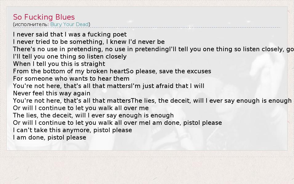 А как ты думаешь, о чем песня "So Fucking Blues" ?