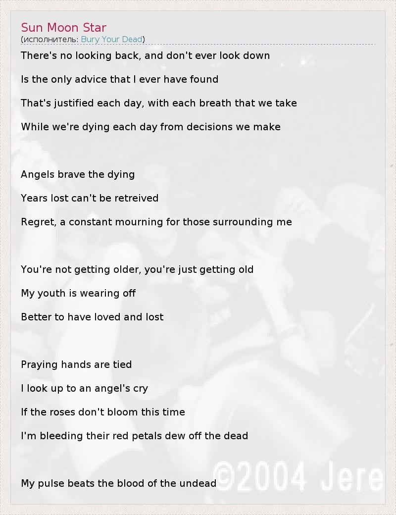 А как ты думаешь, о чем песня "Sun Moon Star" ?