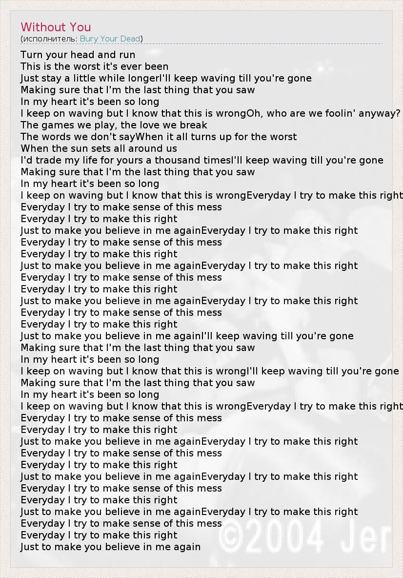 А как ты думаешь, о чем песня "Without You" ?