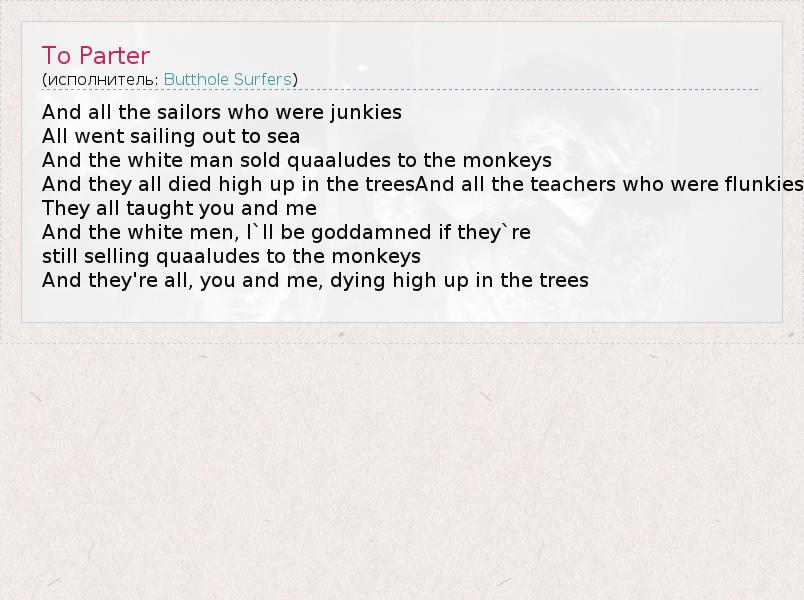 And they all died high up in the treesAnd all the teachers who were flunkies