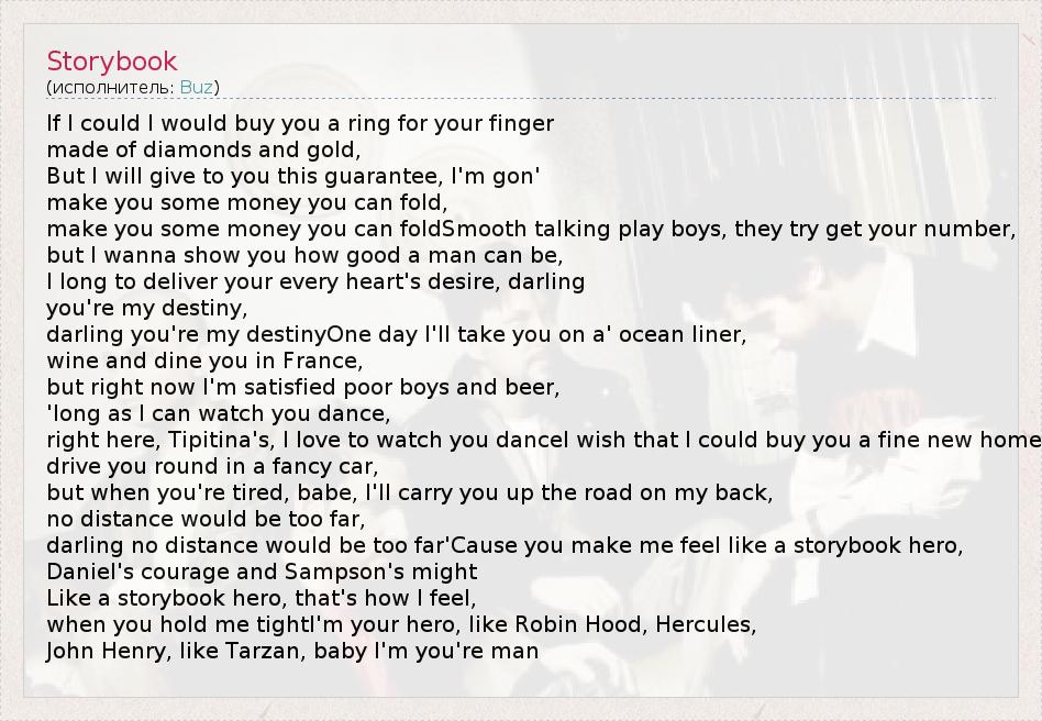 darling no distance would be too far'Cause you make me feel like a storybook hero,
