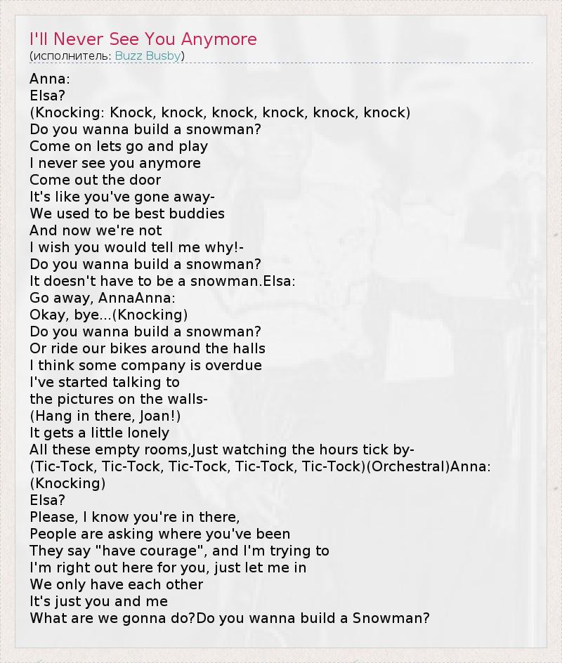 А как ты думаешь, о чем песня "I'll Never See You Anymore" ?