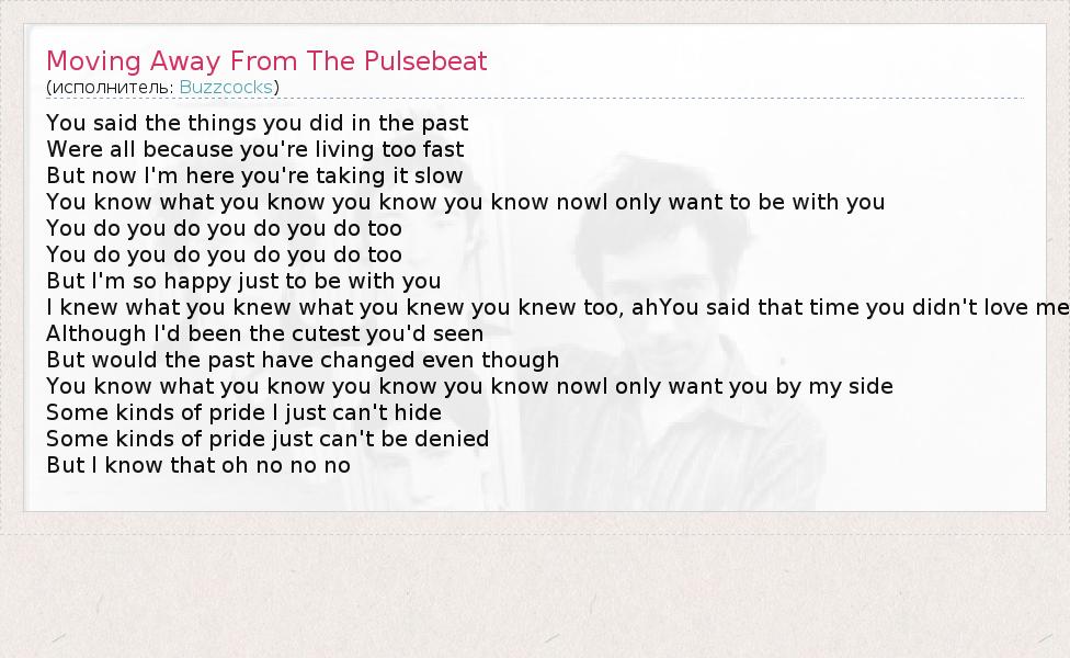 А как ты думаешь, о чем песня "Moving Away From The Pulsebeat" ?
