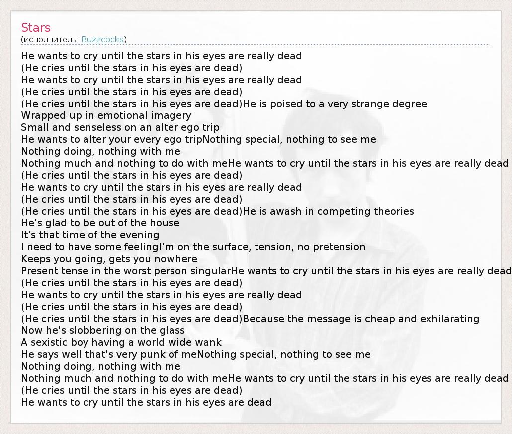 Nothing much and nothing to do with meHe wants to cry until the stars in his eyes are really dead