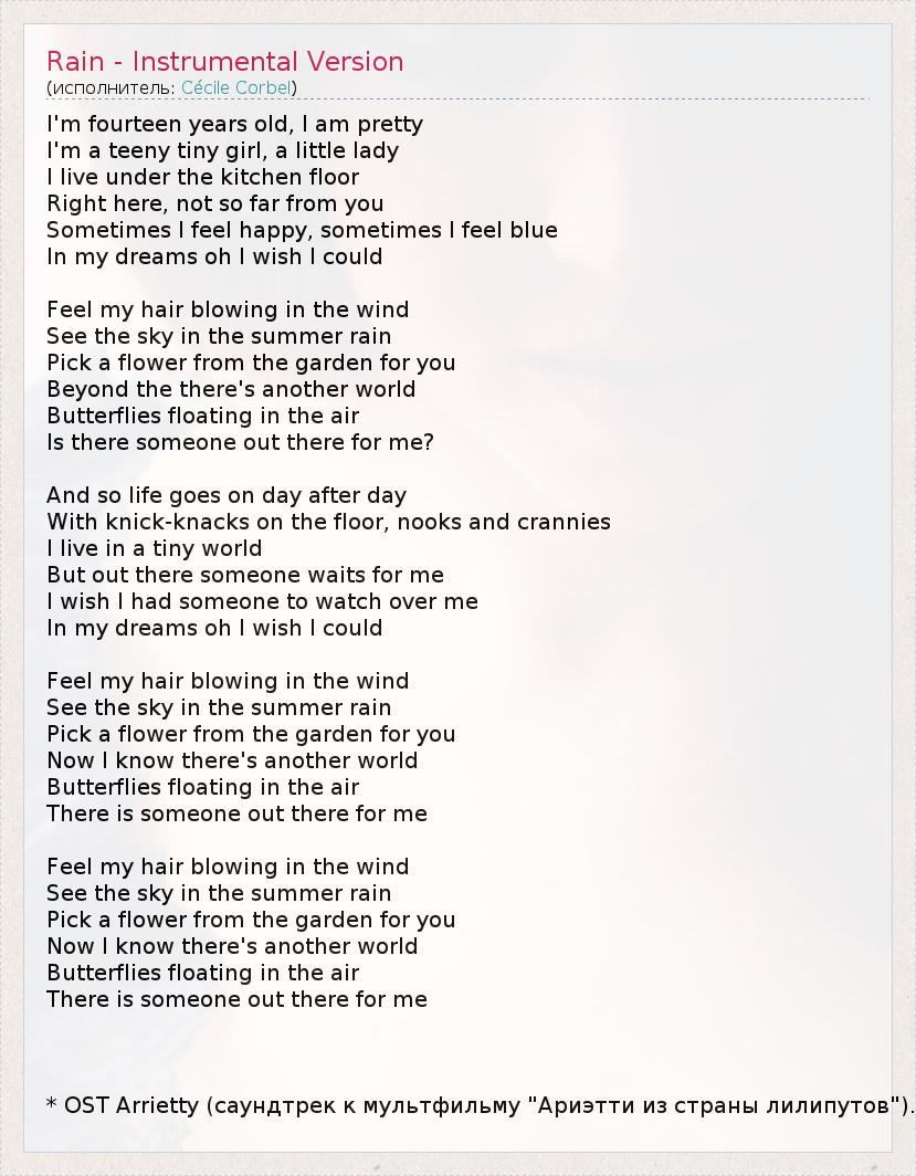 А как ты думаешь, о чем песня "Rain - Instrumental Version" ?