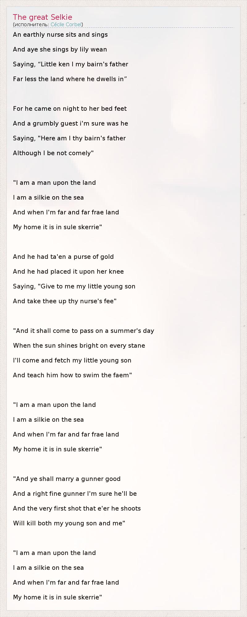 А как ты думаешь, о чем песня "The great Selkie" ?