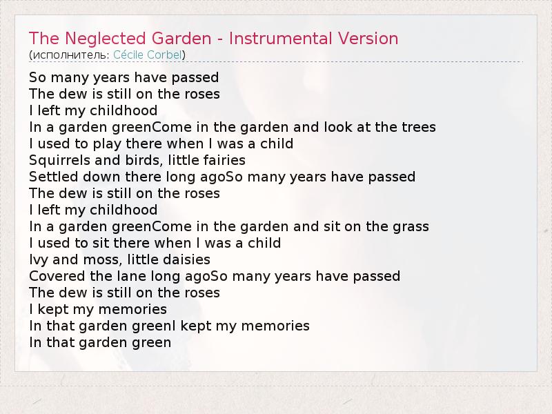А как ты думаешь, о чем песня "The Neglected Garden - Instrumental Version" ?