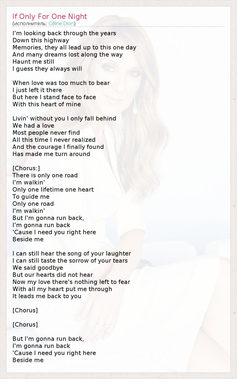 А как ты думаешь, о чем песня "If Only For One Night" ?