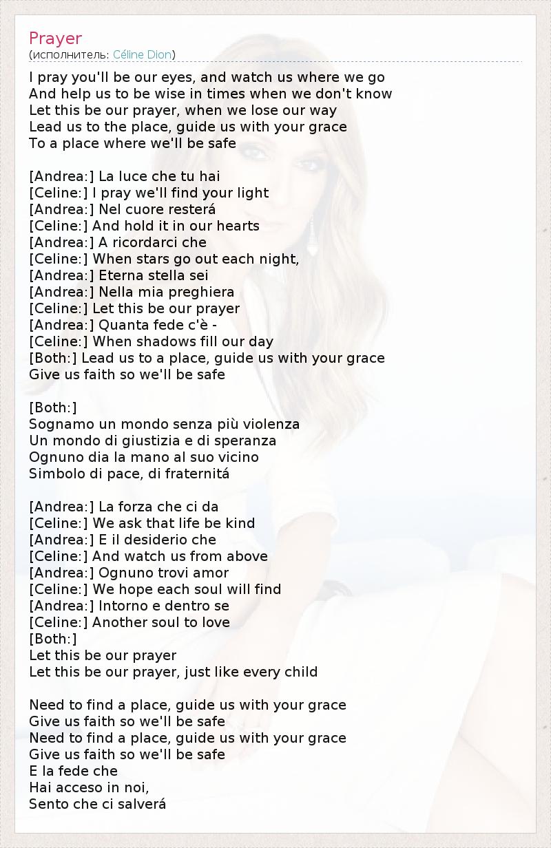 [Celine:] Я молюсь, чтобы мы нашли Твой свет...
