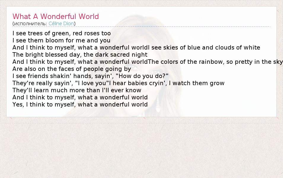 А как ты думаешь, о чем песня "What A Wonderful World" ?