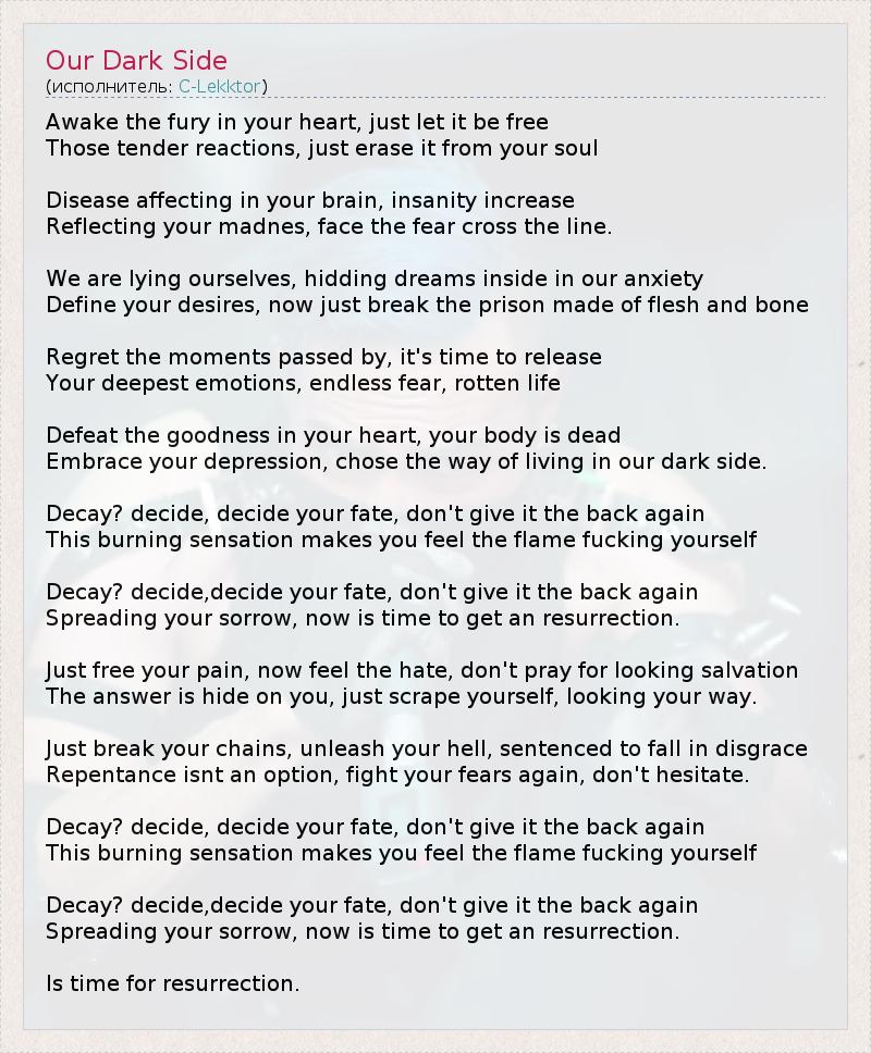А как ты думаешь, о чем песня "Our Dark Side" ?