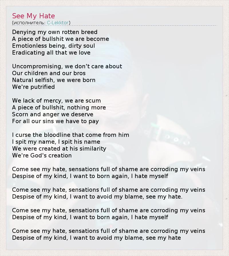 Взгляни на мою ненависть, чувство полное стыда разъедает мои вены,