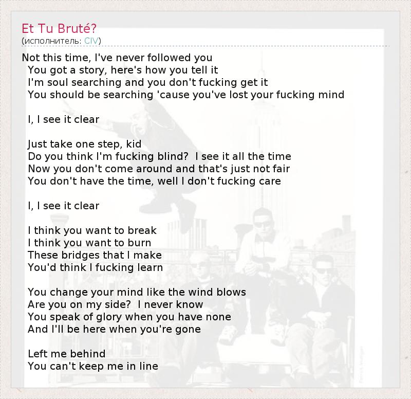 А как ты думаешь, о чем песня "Et Tu Bruté?" ?