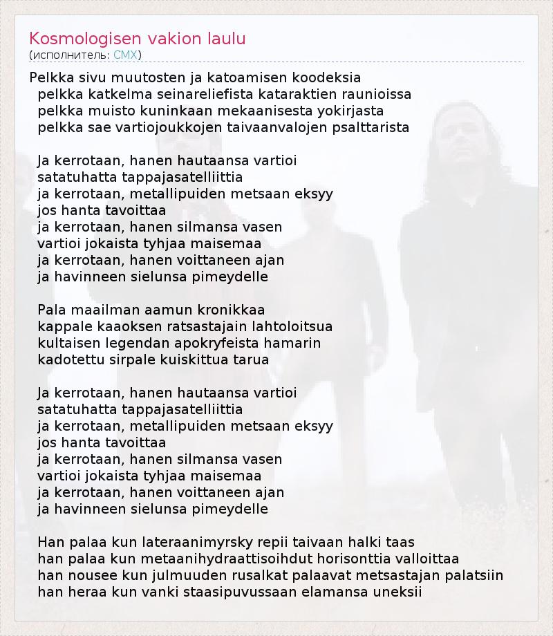 ГлавнаяИсполнителиCMXKosmologisen vakion laulu