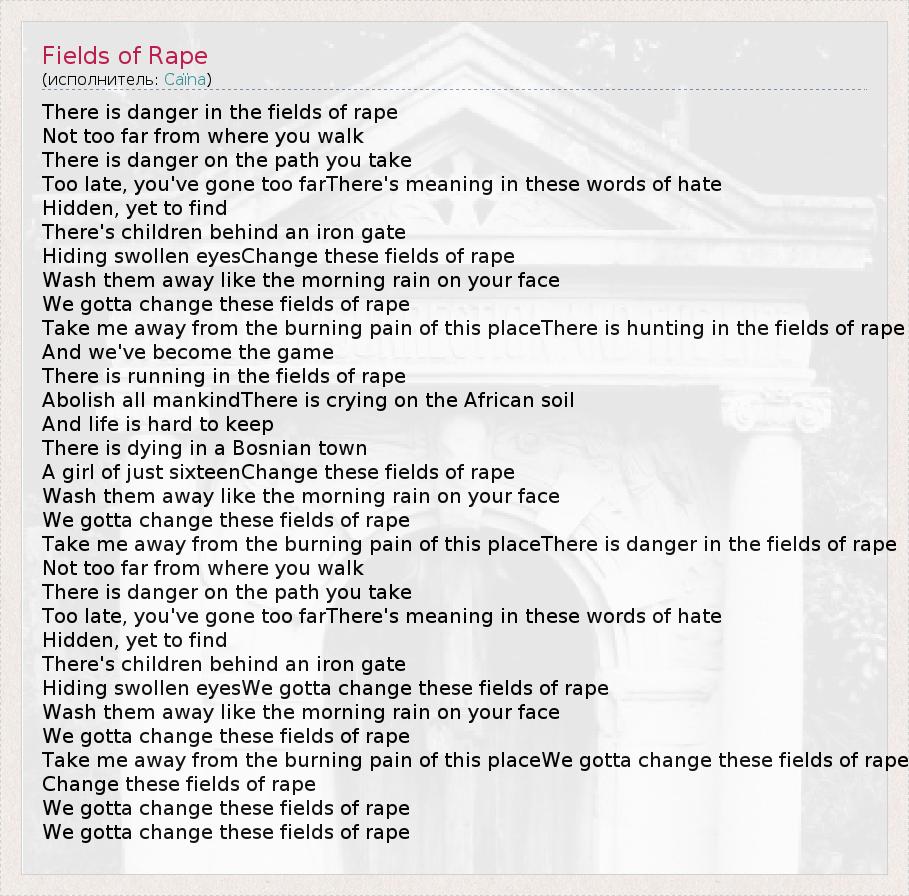 Take me away from the burning pain of this placeThere is danger in the fields of rape