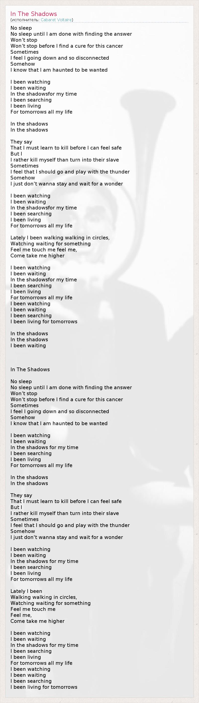 А как ты думаешь, о чем песня "In The Shadows" ?