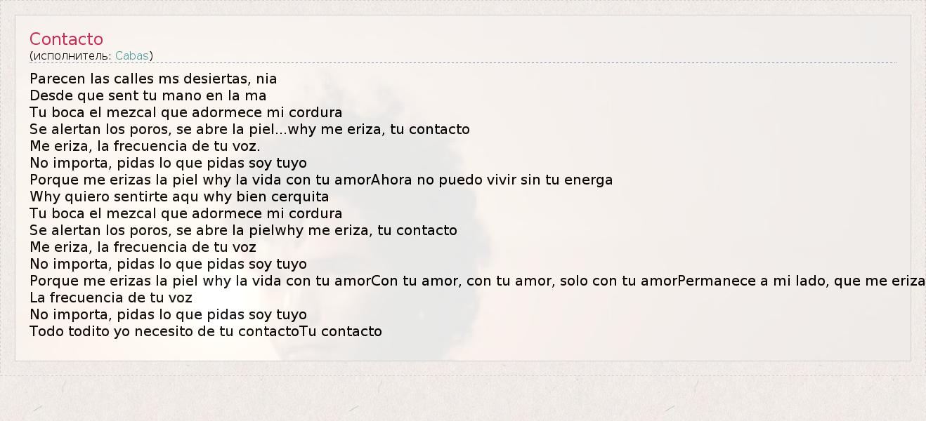 Это интересно:Andrés Mauricio Cabas Rosales,родившийся 7 октября 1977 года, и более известный как Cabas, популярный Колумбийский музыкант исполняющий латино-американскую музыку с долей Карибского звучания.