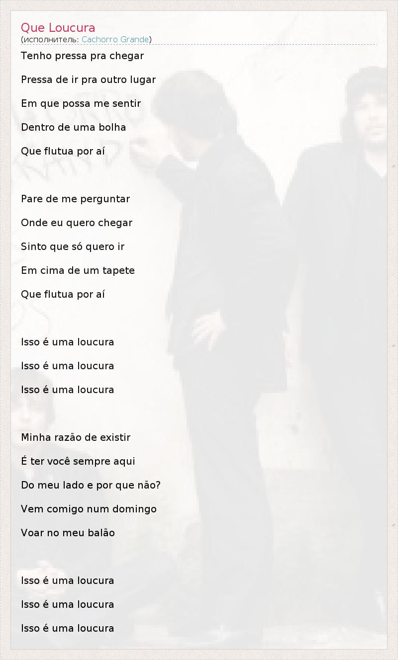 А как ты думаешь, о чем песня "Que Loucura" ?