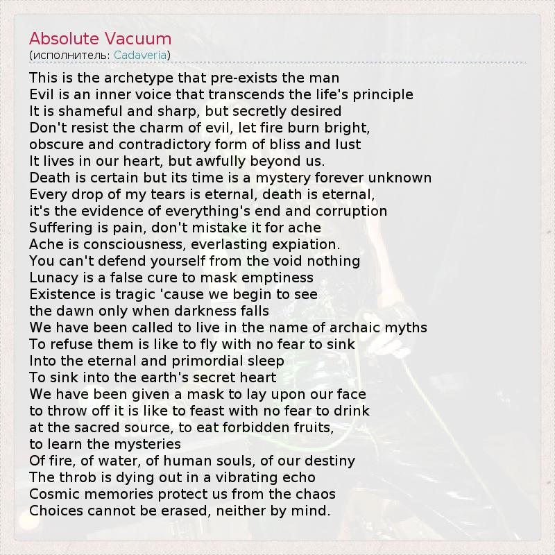 А как ты думаешь, о чем песня "Absolute Vacuum" ?