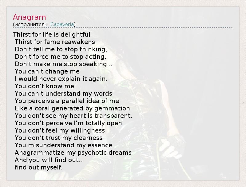 Это интересно:Весной 2001 года среди музыкантов итальянской команды "Opera IX" стали назревать разногласия. Коллеги вдруг перестали понимать друг друга и не могли толком договориться, в каком направлении дальше двигаться. Наконец настал момент, когда нужно было принимать какое-то решение, и на этот шаг пошли вокалистка Кадаверия и ударник Флегиас, объявившие о своем уходе. Скандала никакого не было,... продолжение
