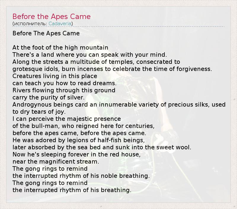 А как ты думаешь, о чем песня "Before the Apes Came" ?