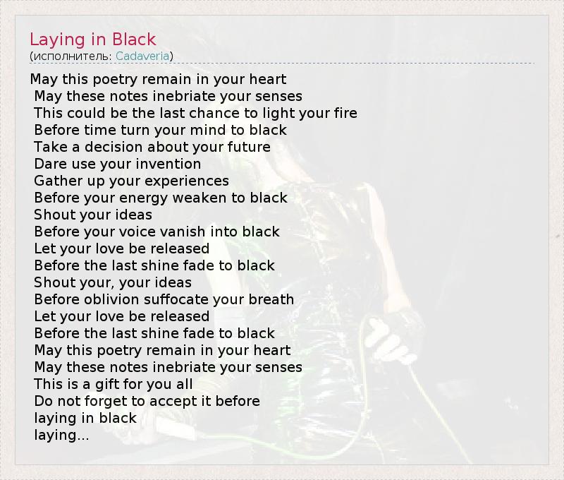 А как ты думаешь, о чем песня "Laying in Black" ?