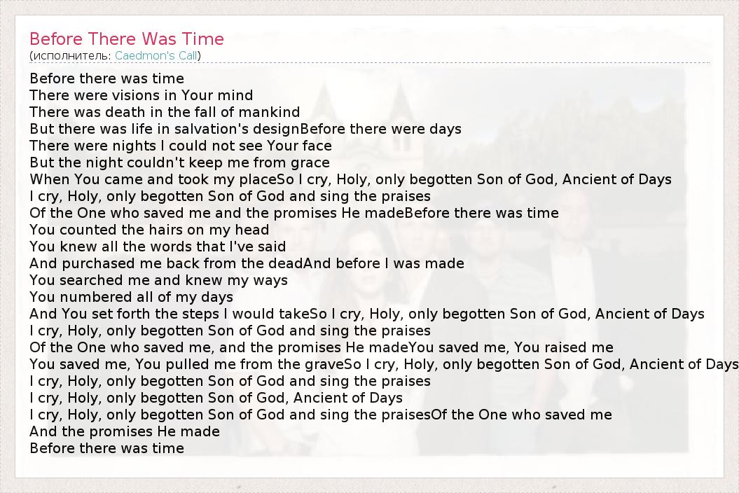 А как ты думаешь, о чем песня "Before There Was Time" ?