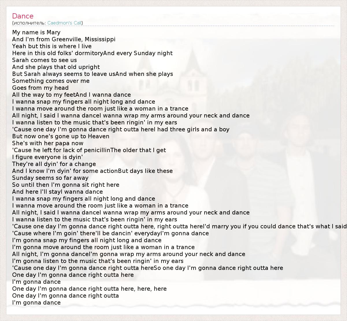 All night, I said I wanna danceI wanna wrap my arms around your neck and dance