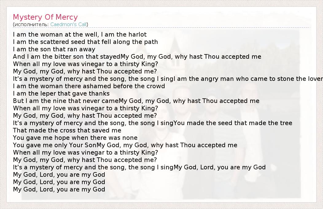 А как ты думаешь, о чем песня "Mystery Of Mercy" ?