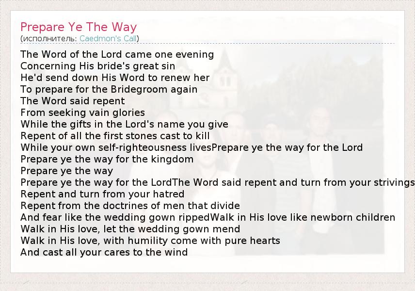 А как ты думаешь, о чем песня "Prepare Ye The Way" ?