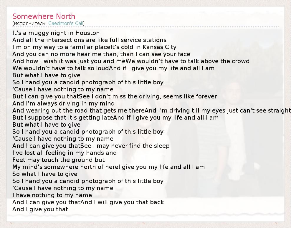 А как ты думаешь, о чем песня "Somewhere North" ?