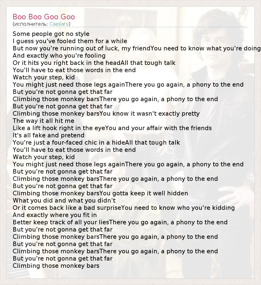 А как ты думаешь, о чем песня "Boo Boo Goo Goo" ?
