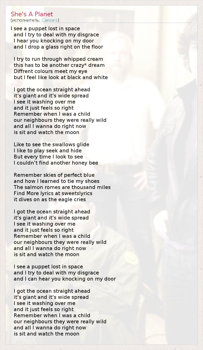 А как ты думаешь, о чем песня "She's A Planet" ?