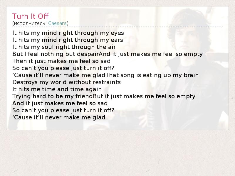 А как ты думаешь, о чем песня "Turn It Off" ?