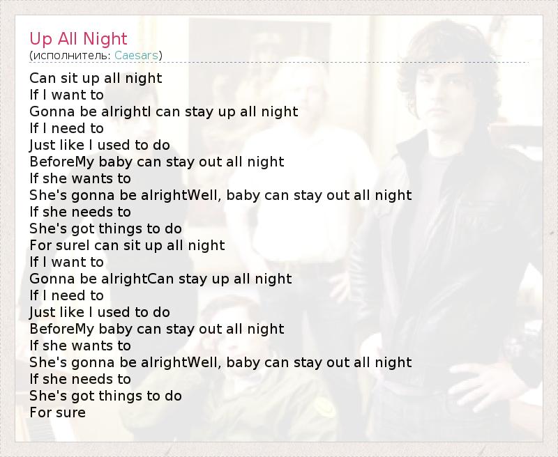 А как ты думаешь, о чем песня "Up All Night" ?