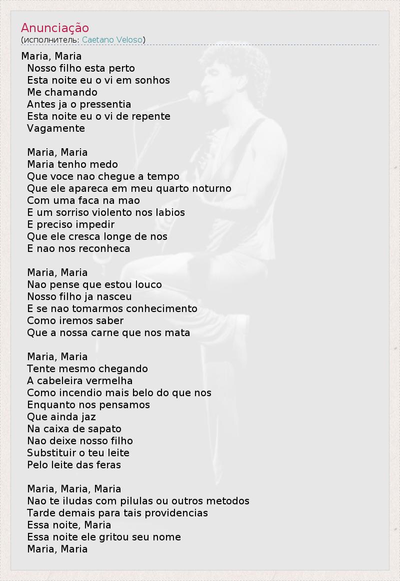 Это интересно:Каэтану Велозу - один из основателей музыкального течения 1960х годов "тропикализмо", популярный бразильский автор и певец. Тексты песен Каэтану Велозу сложны, условны и интересны, наряду с Шику Буарке он относится к числу наиболее талантливых и популярных современных португалоязычных поэтов-песенников. Каэтану Велозу родился 7 августа 1942 года в сельской местности Баия на северо-востоке... продолжение