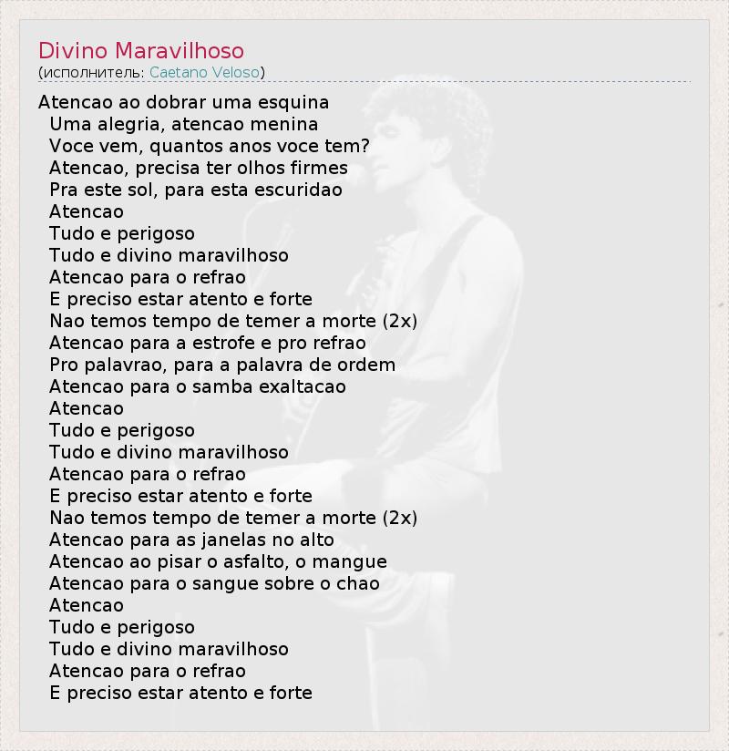 А как ты думаешь, о чем песня "Divino Maravilhoso" ?