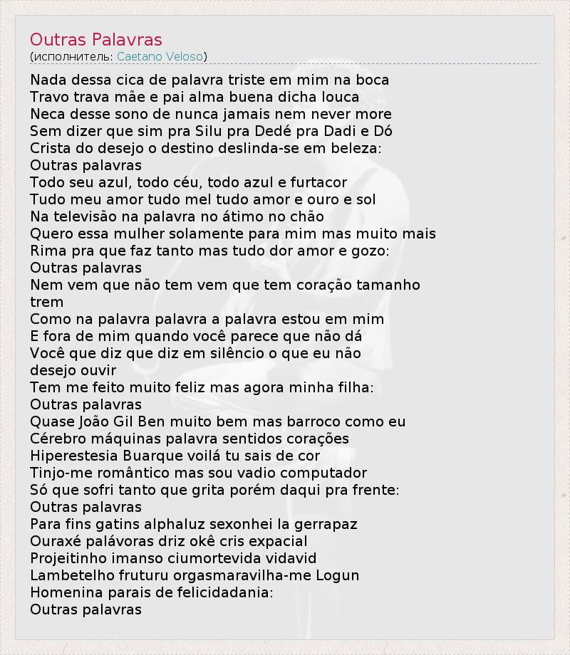 А как ты думаешь, о чем песня "Outras Palavras" ?