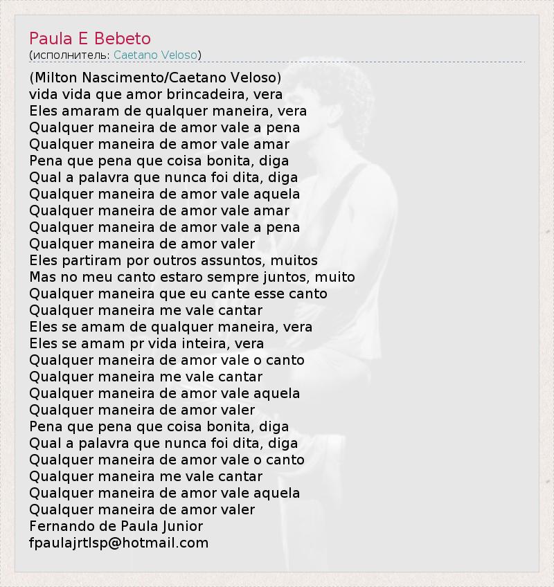 А как ты думаешь, о чем песня "Paula E Bebeto" ?