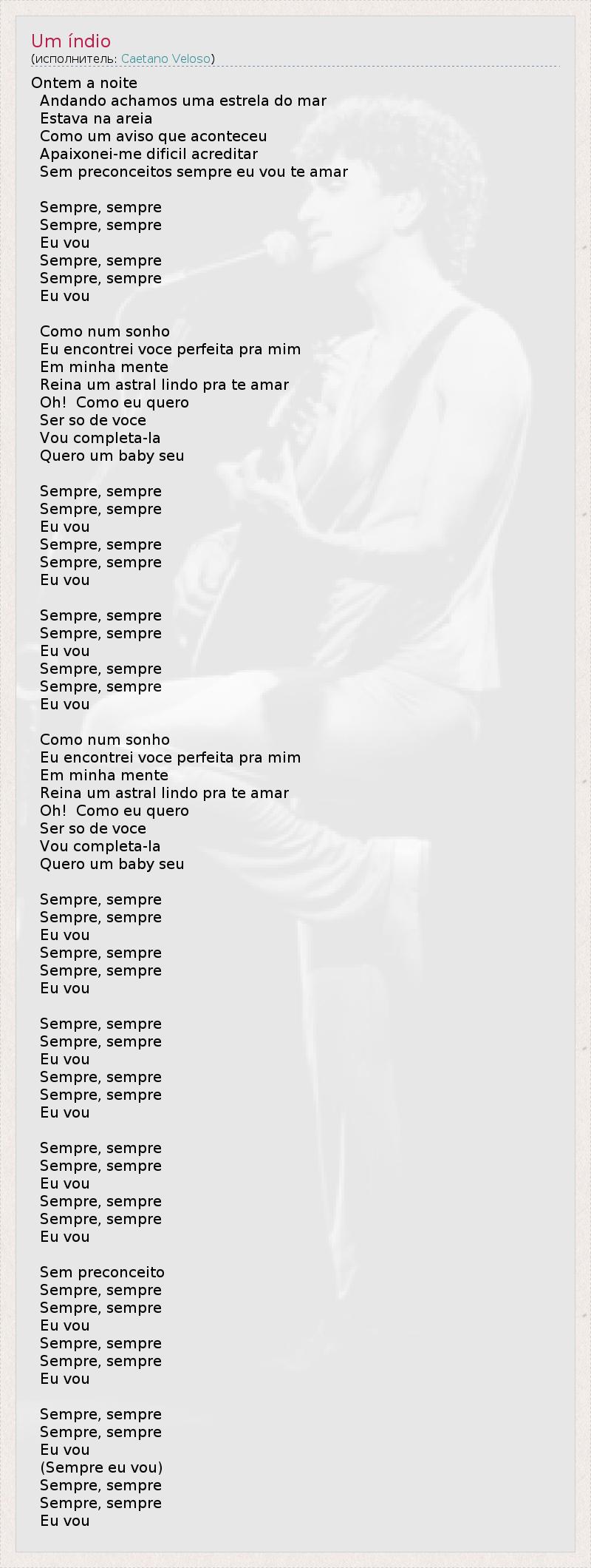 А как ты думаешь, о чем песня "Um índio" ?