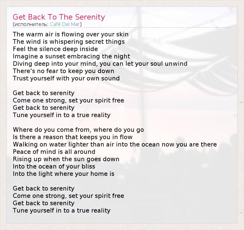 ГлавнаяИсполнителиCafé Del MarGet Back To The Serenity