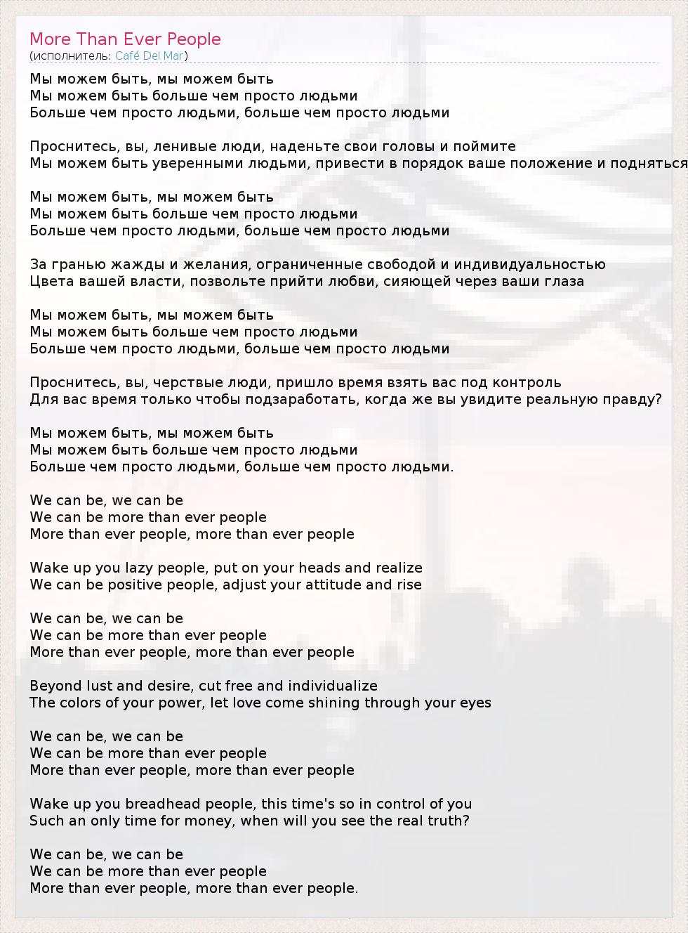 А как ты думаешь, о чем песня "More Than Ever People" ?