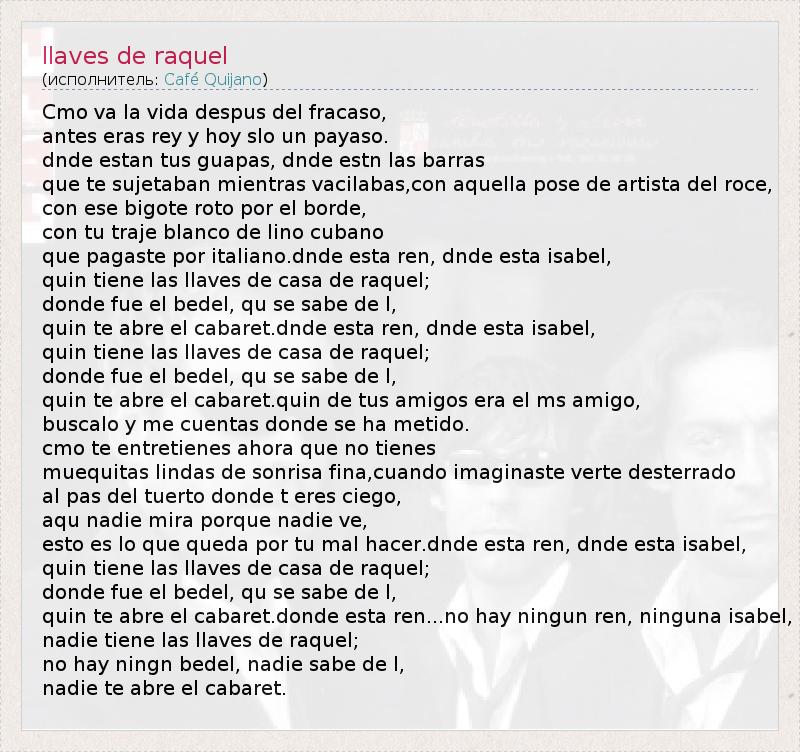 А как ты думаешь, о чем песня "llaves de raquel" ?