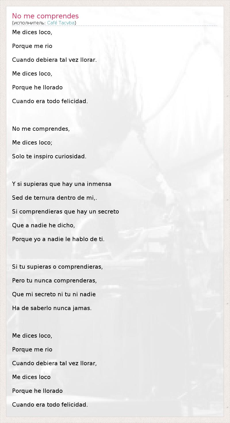 А как ты думаешь, о чем песня "No me comprendes" ?