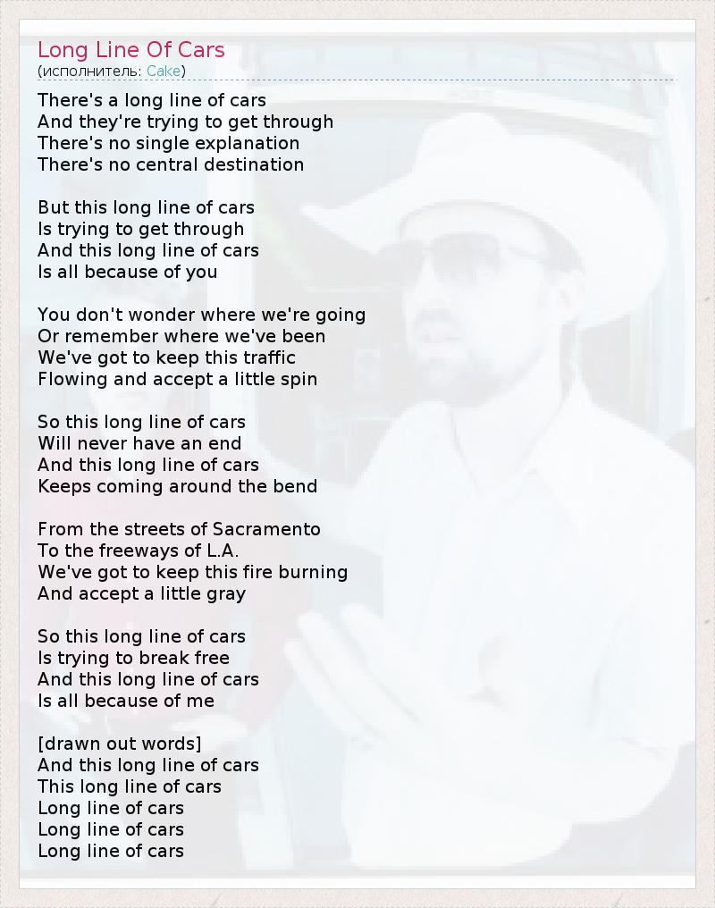 А как ты думаешь, о чем песня "Long Line Of Cars" ?
