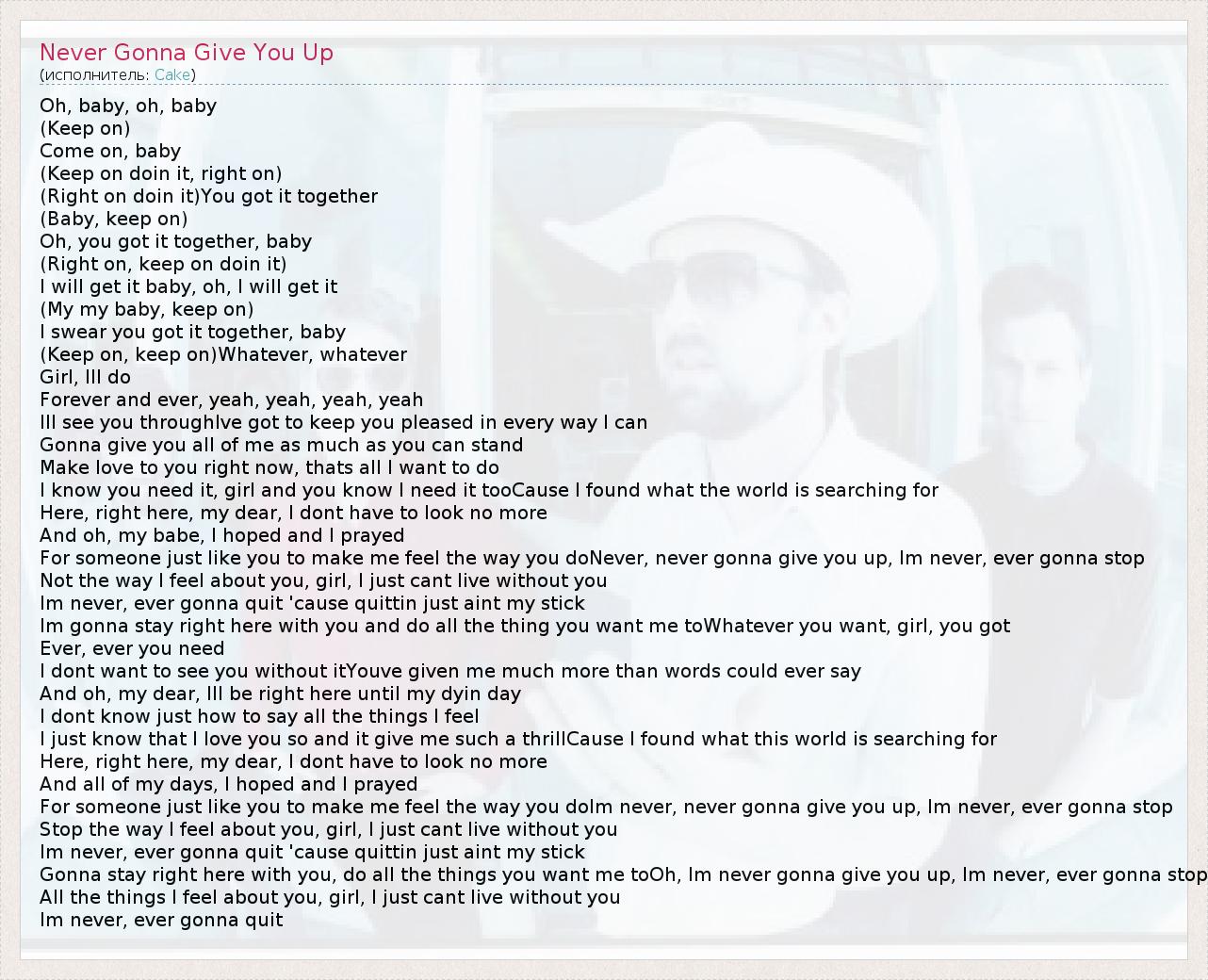 ГлавнаяИсполнителиCakeNever Gonna Give You Up