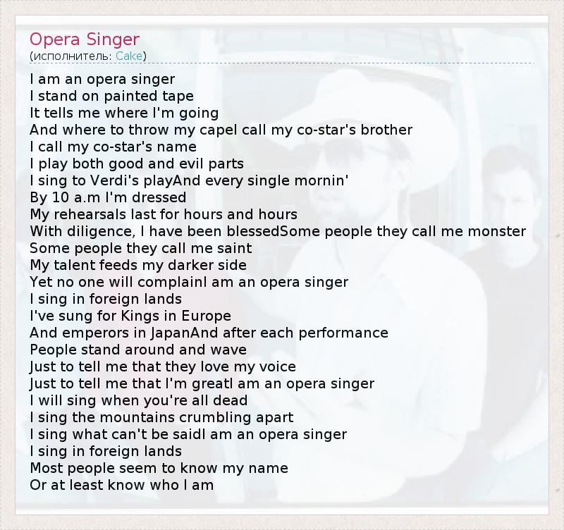 А как ты думаешь, о чем песня "Opera Singer" ?